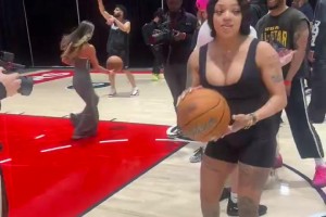 英格拉姆女友秀了一手神准三分!明天将参加全明星名人赛!