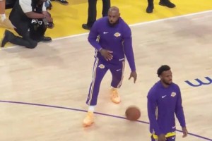 老詹搞笑的素材可真不少啊!都给现场球迷看乐了!