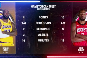 且看且珍惜转播方晒出詹姆斯&杜兰特半场数据~