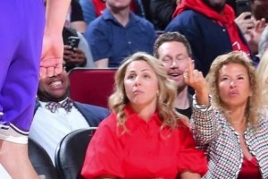 今天东契奇飚进杀死比赛的三分后,场边一女火蜜朝他竖中指