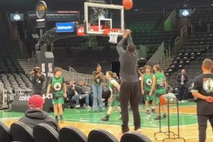 宝刀未老啊皮尔斯赛前手痒,45度角三分5投全中!