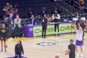 里夫斯赛前训练手感火热!湖记调侃:今晚小里要拿84分了!