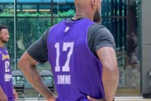 难为记者了!湖人队员搞笑互换球衣训练 拥有对方技能?