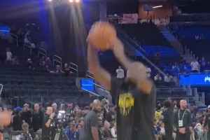 老詹赛前热身秀暴扣令客场球迷兴奋欢呼!