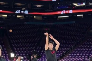 手感相当不错啊!杨瀚森附加赛赛前热身猛练三分~