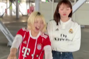 日本拜仁女球迷在皇马女球迷面签疯狂庆祝,但颜值好像是输了