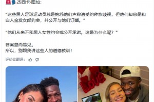 维尼修斯前女友:这些黑人球员总是抱怨种族歧视,但他们却总是和白人金发女郎约会