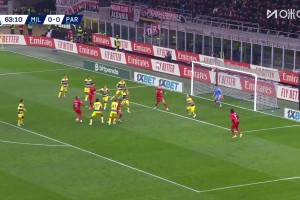 可惜!莱奥接传球小角度抽射,皮球击中门柱错失机会