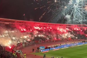 看台变火海!贝尔格莱德德比红星球迷燃放烟花爆竹!
