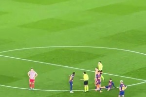 愿无大碍!球迷实拍亚马尔受伤后躺在地上,队友做换人手势