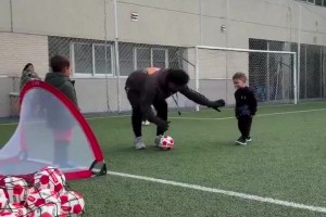 巴尔韦德儿子已拥有极强的射门能力,随后他作出了贝林厄姆庆祝~