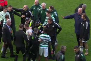火爆德比!流浪者球迷挥舞着焰火和投掷物冲向凯尔特人球迷区