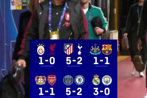 第一联赛?欧冠1/8决赛首回合英超6队0胜狂丢16球