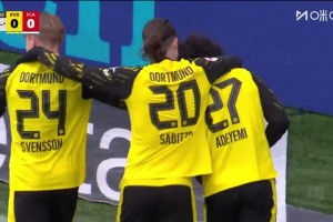 多特先下一城!拜尔横传门前阿德耶米门前抢射破门!