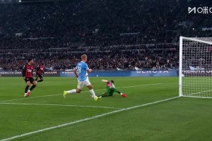 米兰0-1落后!伊萨克森挤翻埃斯图皮尼安,小角度推射破门