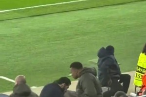 姆巴佩看完回放后走近四官,举报B席手球犯规了