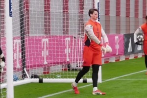 有望出战!来看看拜仁小门神乌尔比希近期的倒地扑球训练!