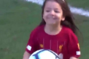 萨拉赫女儿小萌娃神准破门,萨拉赫欣慰的笑着