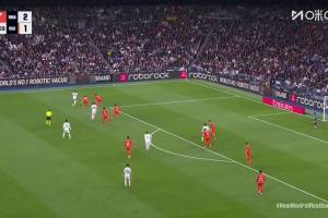 这球漂亮!巴尔韦德弧顶搓射破门,皇马3-1领先皇社