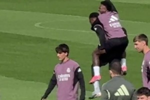 贝林厄姆和裤袜&纳达尔在伯纳乌打网球 ,裁判是老佛爷