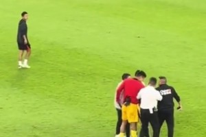 球迷冲场只为找韦世豪,一旁的刘殿座还帮着安抚,韦世豪也是宠!