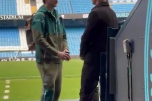 赛后乔·哈特与特拉福德亲切交谈,哈兰德也加入了他们