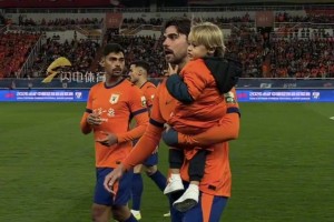 泰山队对阵大连英博,泽卡抱娃参加赛前合影