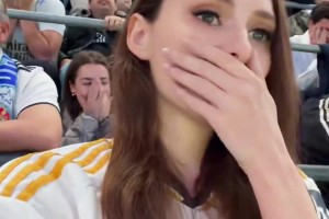 现场实拍维尼修斯错失大单刀,场边的美女球迷惊呆了