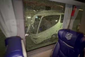 赛前马竞大巴玻璃被巴萨球迷砸碎