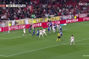 马竞1-2再次落后!巴尔加斯角球传中!古德利门前头球破门!