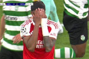 马杜埃凯内切杀入禁区爆射击中边网!场边阿尔特塔抱头遗憾!